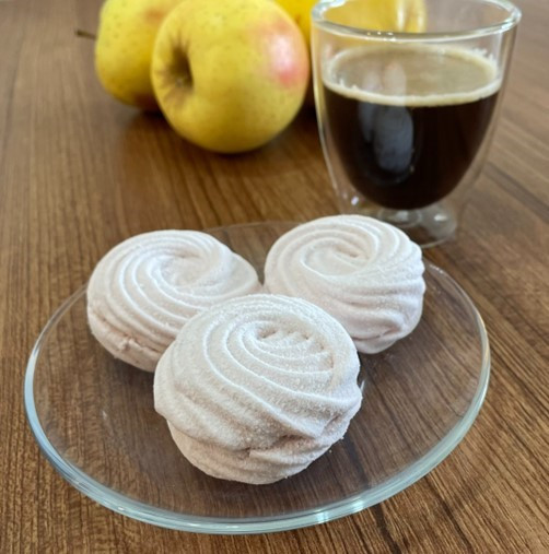 Білки починаємо збивати окремо, поки вариться сироп. Коли вони збиті в пивну піну, починаємо поступово вводити цукор і збиваємо до стійких піків, додаємо 2г лимонної кислоти і ще збиваємо 1 хв.