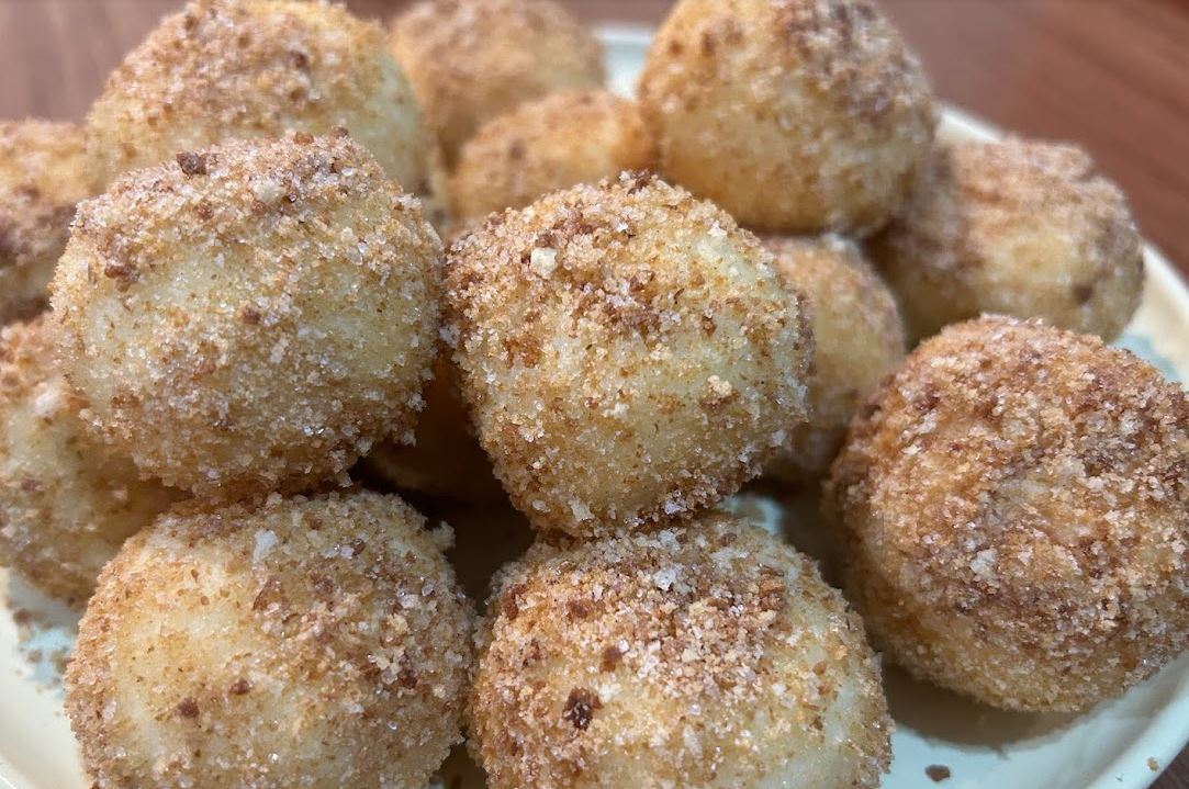 Посипка має бути готова зазделегідь: підсмажити на сковороді сухарі з цукром та корицею (кількість на смак). Відварені гомбовці відразу ретельно обваляти у посипці. Можна їсти відразу, але ще смачніше буде з ягідним соусом чи сметанкою.